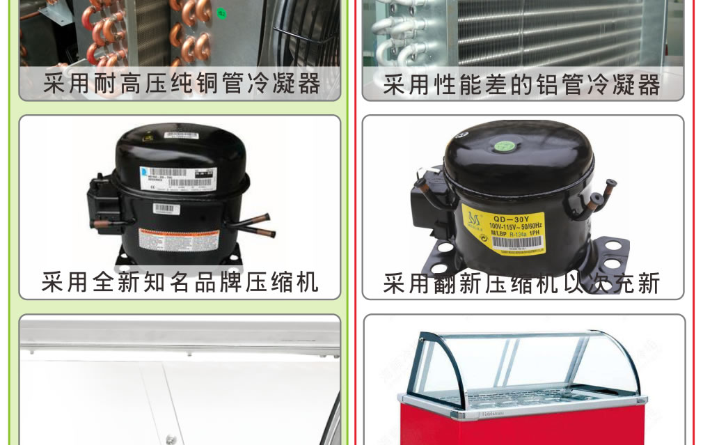 ③ 冷柜內(nèi)外溫差較大時,遇空氣溫度較大的天氣時玻璃門上有水霧凝結,將溫度調(diào)整后即可。