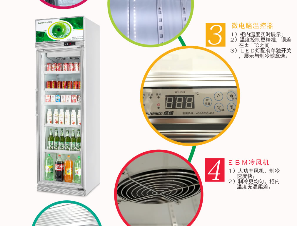 ④ 初次使用時,先空柜運行1小時左右,待柜內溫度降下來后再逐步放入商品,盡量少量多次添加,柜內不能添加過滿。