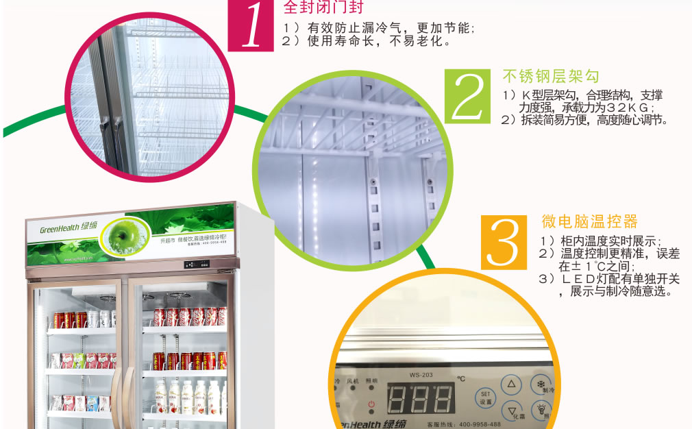 ④ 初次使用時,先空柜運行1小時左右,待柜內溫度降下來后再逐步放入商品,盡量少量多次添加,柜內不能添加過滿。