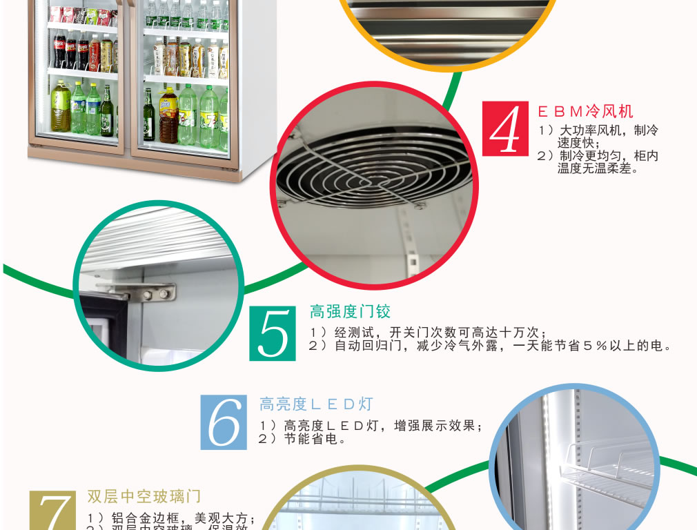 | LG-2400 | 四門豪華冷藏展示柜(香檳色) | 2400*680*2120 | 0-10℃ | 2120 | 700 |