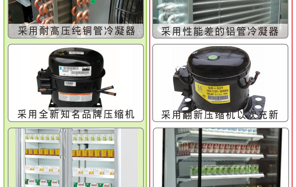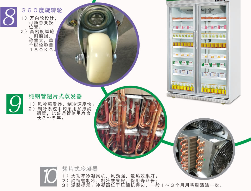 ④ 初次使用時,先空柜運行1小時左右,待柜內溫度降下來后再逐步放入商品,盡量少量多次添加,柜內不能添加過滿。