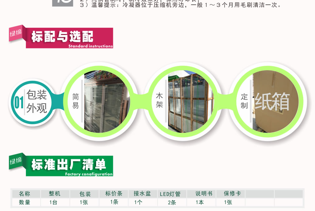 ④ 初次使用時(shí),先空柜運(yùn)行1小時(shí)左右,待柜內(nèi)溫度降下來后再逐步放入商品,盡量少量多次添加,柜內(nèi)不能添加過滿。