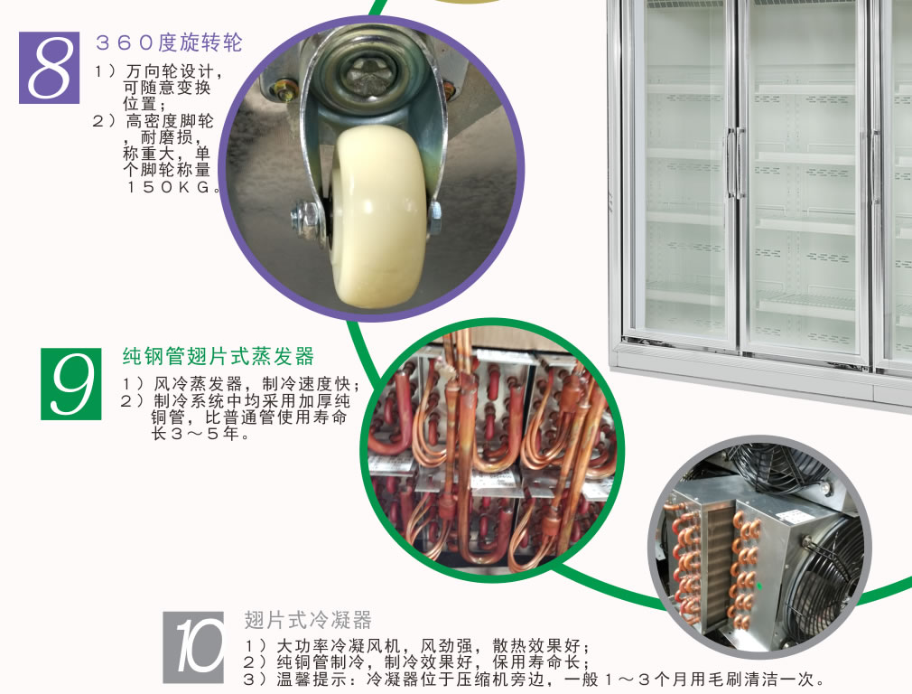 ③ 冷柜內外溫差較大時,遇空氣溫度較大的天氣時玻璃門上有水霧凝結,將溫度調整后即可。