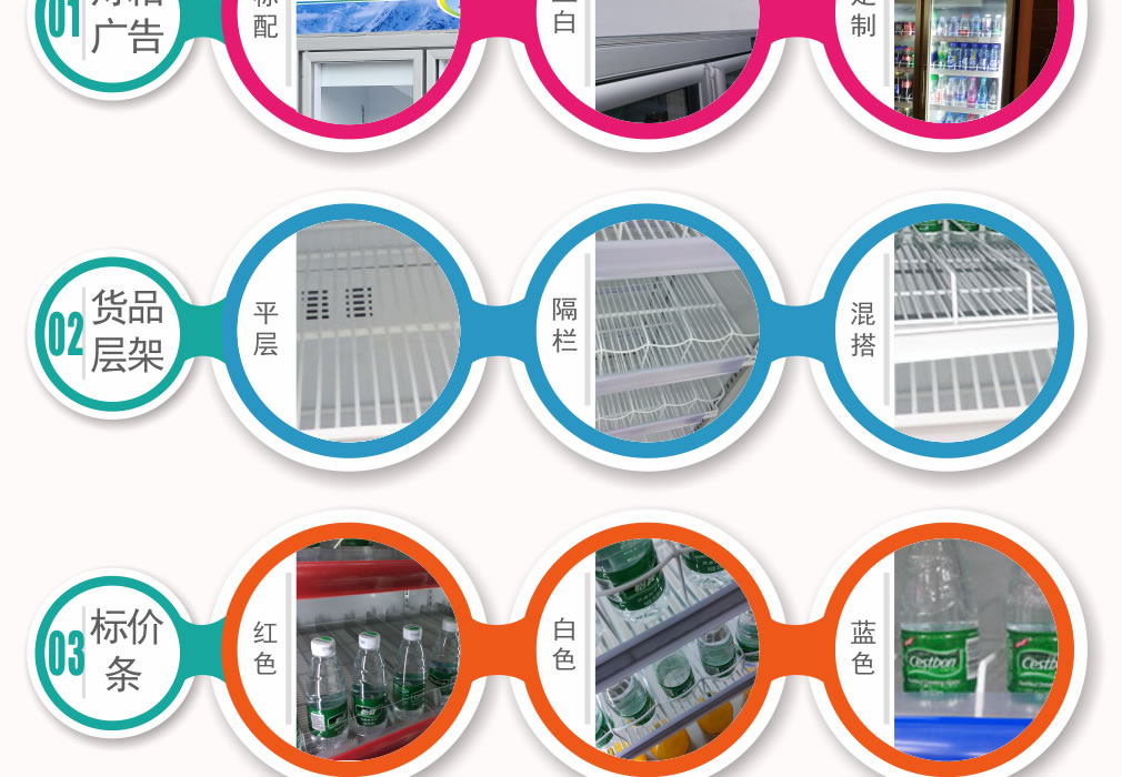 ④ 初次使用時,先空柜運行1小時左右,待柜內溫度降下來后再逐步放入商品,盡量少量多次添加,柜內不能添加過滿。